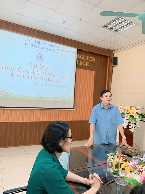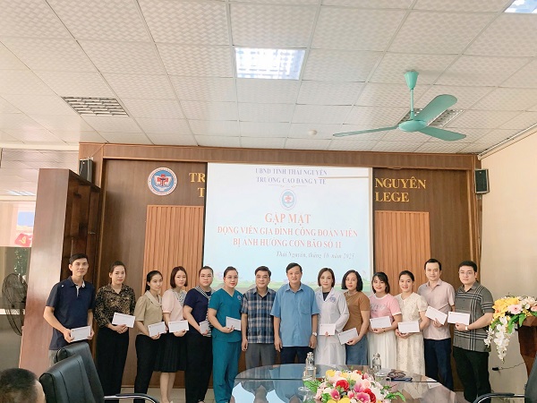 Trong không khí ấm áp và chân tình, đại diện lãnh đạo Nhà trường đã gửi lời thăm hỏi, động viên sâu sắc tới các thầy cô, cán bộ, nhân viên không may bị thiệt hại trong đợt bão vừa qua. Bão số 11 đã gây ra nhiều mất mát về tài sản, ảnh hưởng đến đời sống của nhiều gia đình; song chính trong hoàn cảnh khó khăn ấy, tinh thần “tương thân tương ái, lá lành đùm lá rách” lại càng được phát huy mạnh mẽ trong tập thể Trường Cao đẳng Y tế Thái Nguyên.