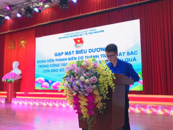 DS. Cao Hoàng Hải – đại diện Đoàn Trường Cao đẳng Y tế Thái Nguyên công bố quyết định khen thưởng cho 35 đoàn viên thanh niên có thành tích xuất sắc trong công tác hỗ trợ khắc phục hậu quả bão số 11.